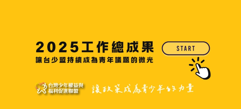 台灣兒少權法自2011年通過後,已經超過了10個年頭,現今的兒少面臨的困境與問題,已經與過往不同。故在民間團體的呼籲與推動下,2025年開始,台少盟與民間團體將針對現行法令與政策對兒少權益保障的不足再次修法。屆時勢必需要更多成人社會觀念的改變與資源的投入,需要您一起來關心。