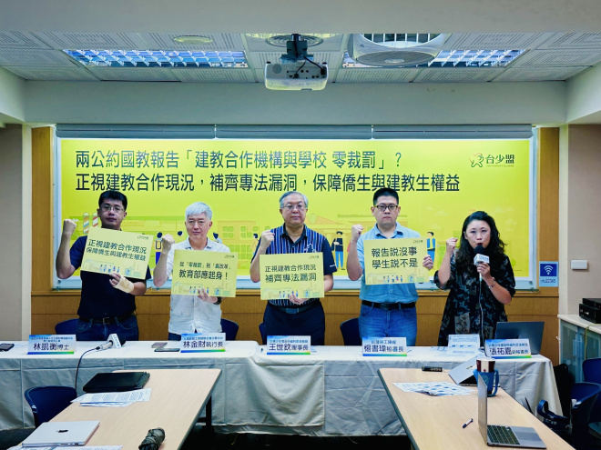 第四次國家報告審查在即,報告中關於「建教生權益保障」內容竟稱「2020年至2024年並無建教合作機構及學校違反規定遭裁罰」,台灣少年權益與福利促進聯盟(台少盟)今(20)日與偕同台灣勞工陣線、全國教師工會總聯合會、及林凱衡博士召開記者會,引用立法院預算中心報告及教育部例行調查數據,證實建教合作亂象依舊,違規裁罰案亦持續發生,國家報告內容明顯與事實不符,要求報告應呈現裁罰事實。